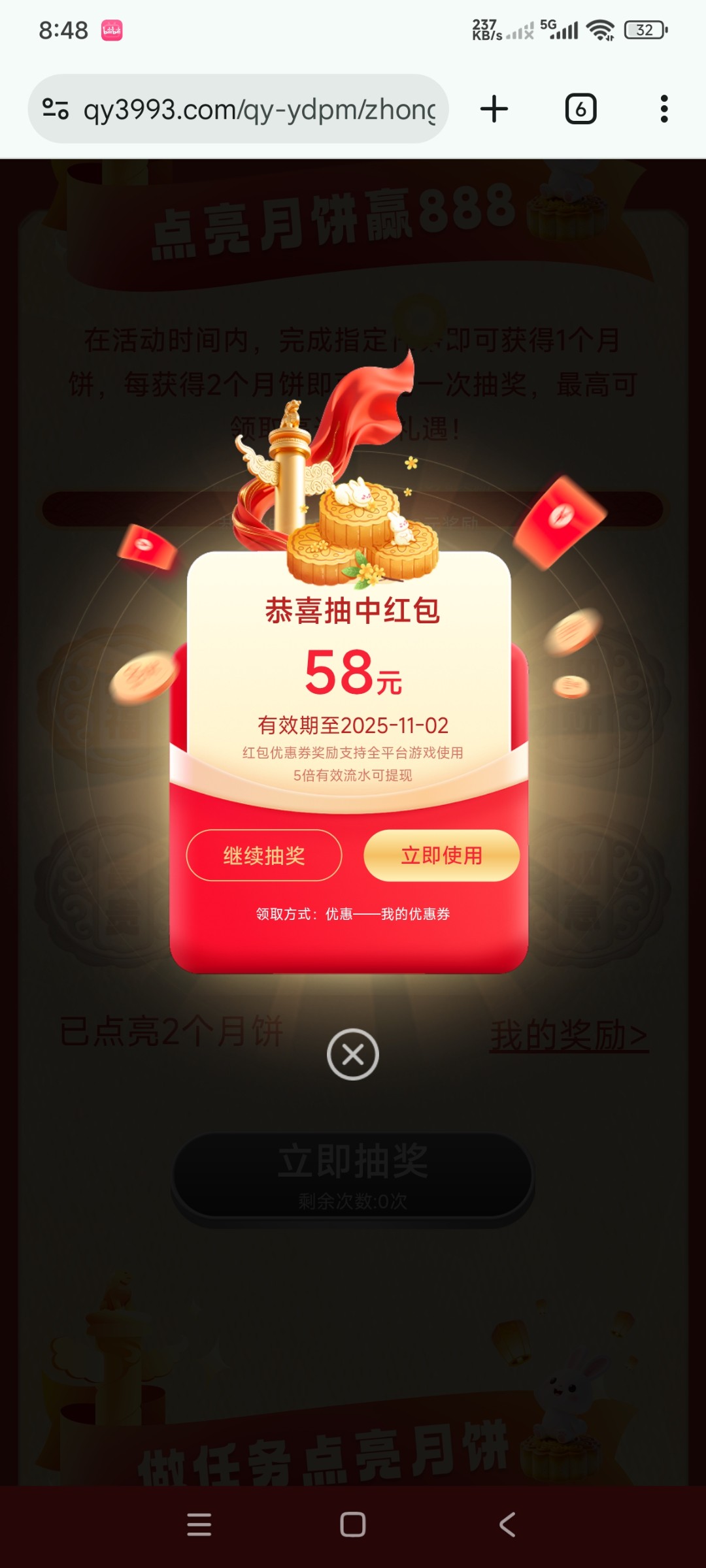 需要充值58+10,有券的还有额外58