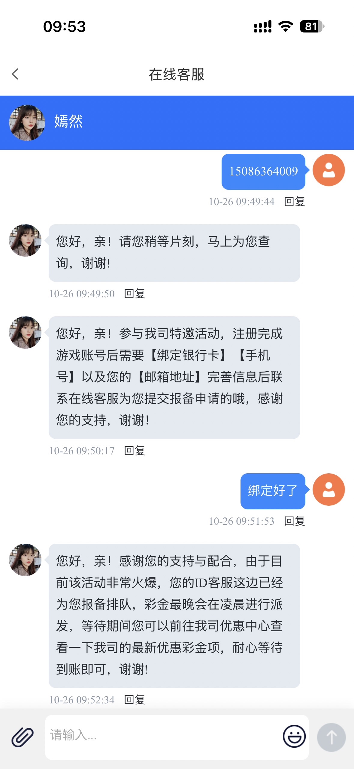 我发送短信没到 找客服申请的