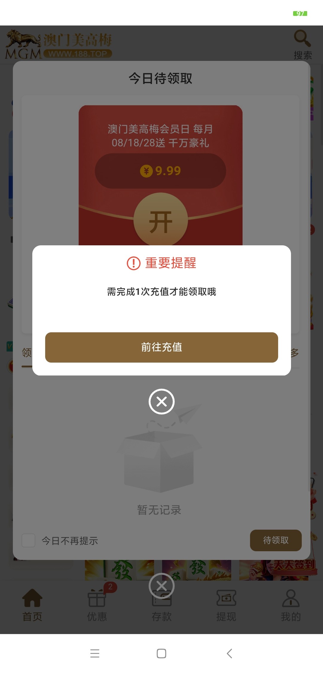 【美高梅188】充值回馈9.9