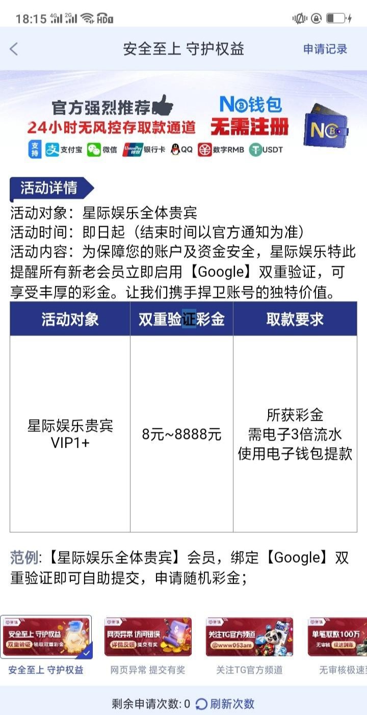 双重验证彩金重置了,最近领过彩金登录过的可以试试,我上个月刚领取过,这个月又可以了 053.com