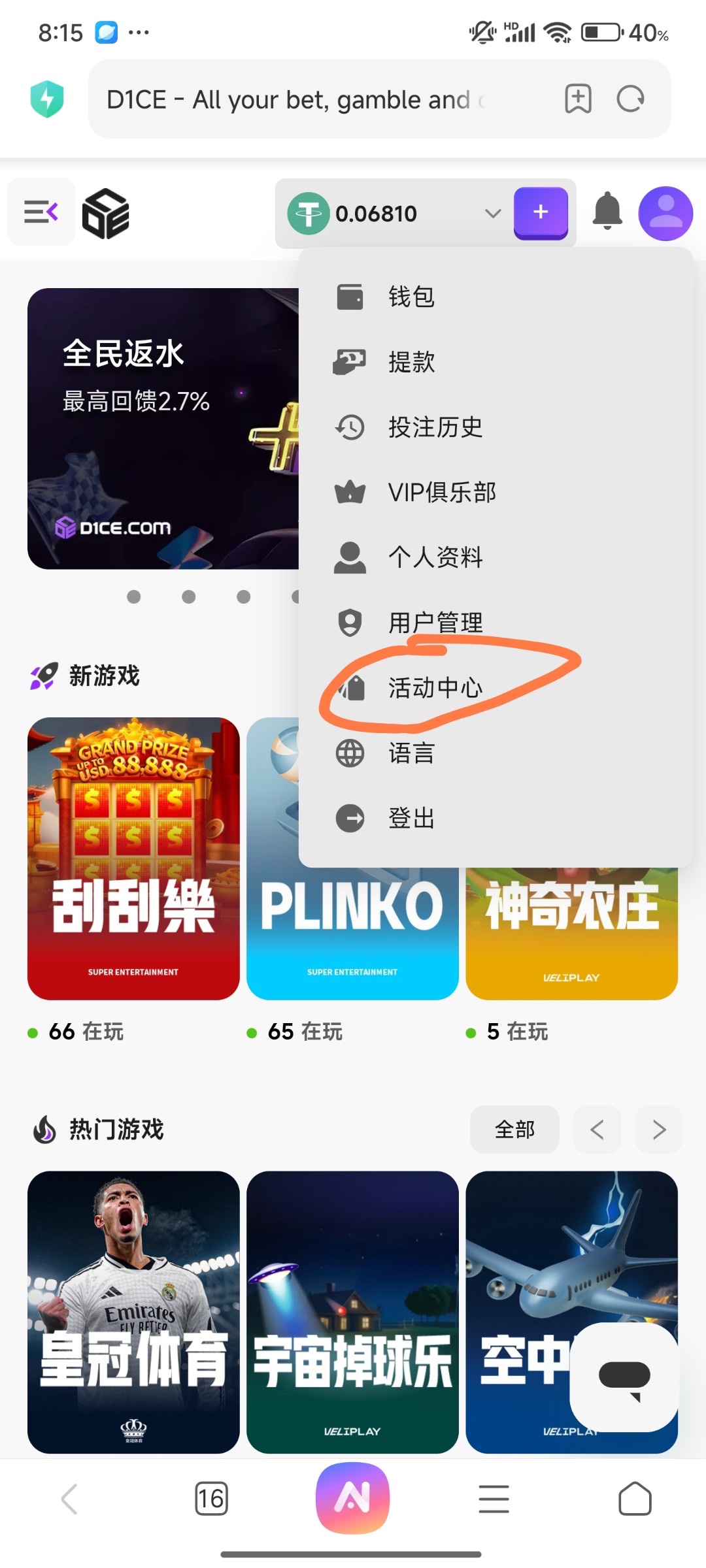 链接:dice888.vip随机送1U~100U