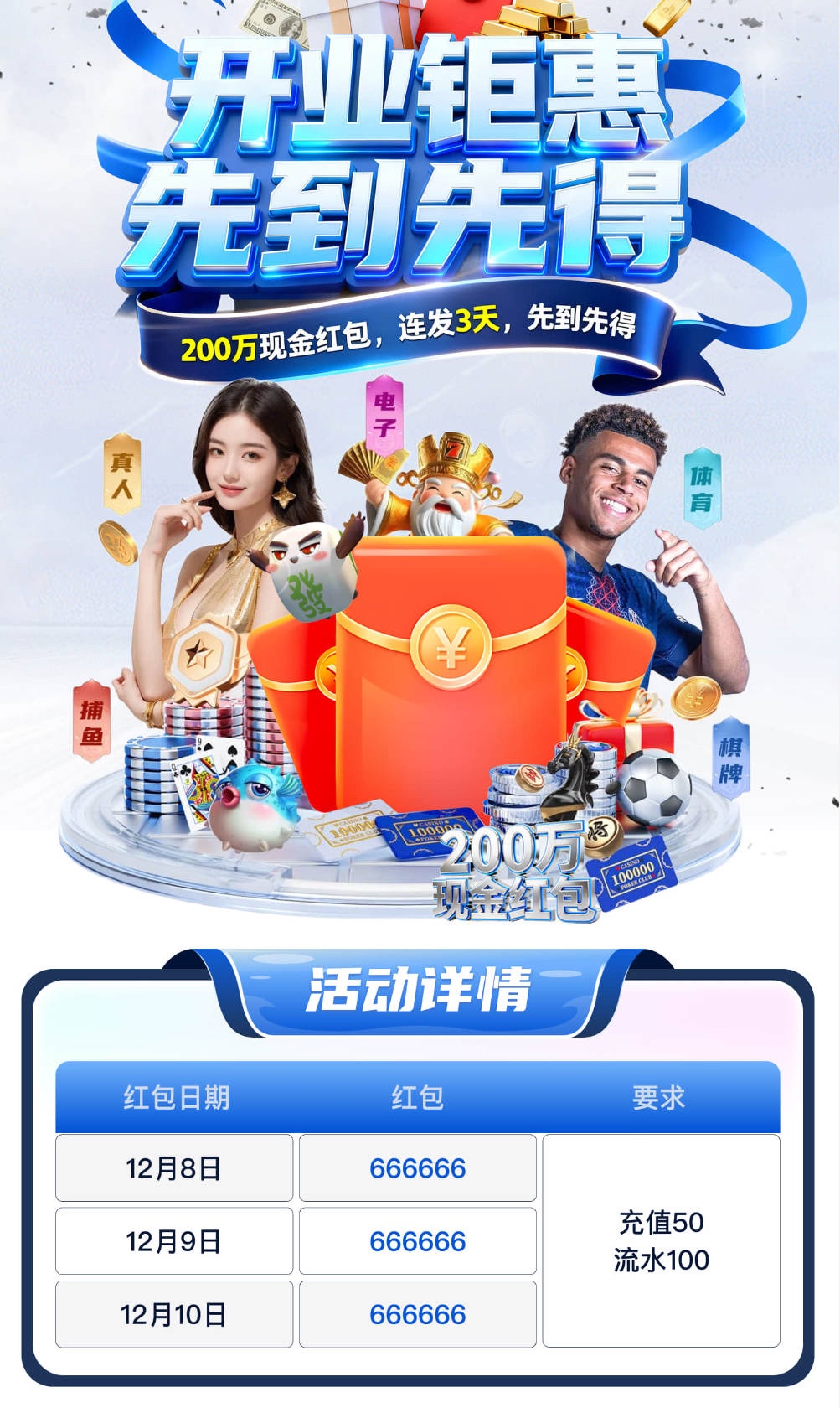 充值50+100流水即可参与