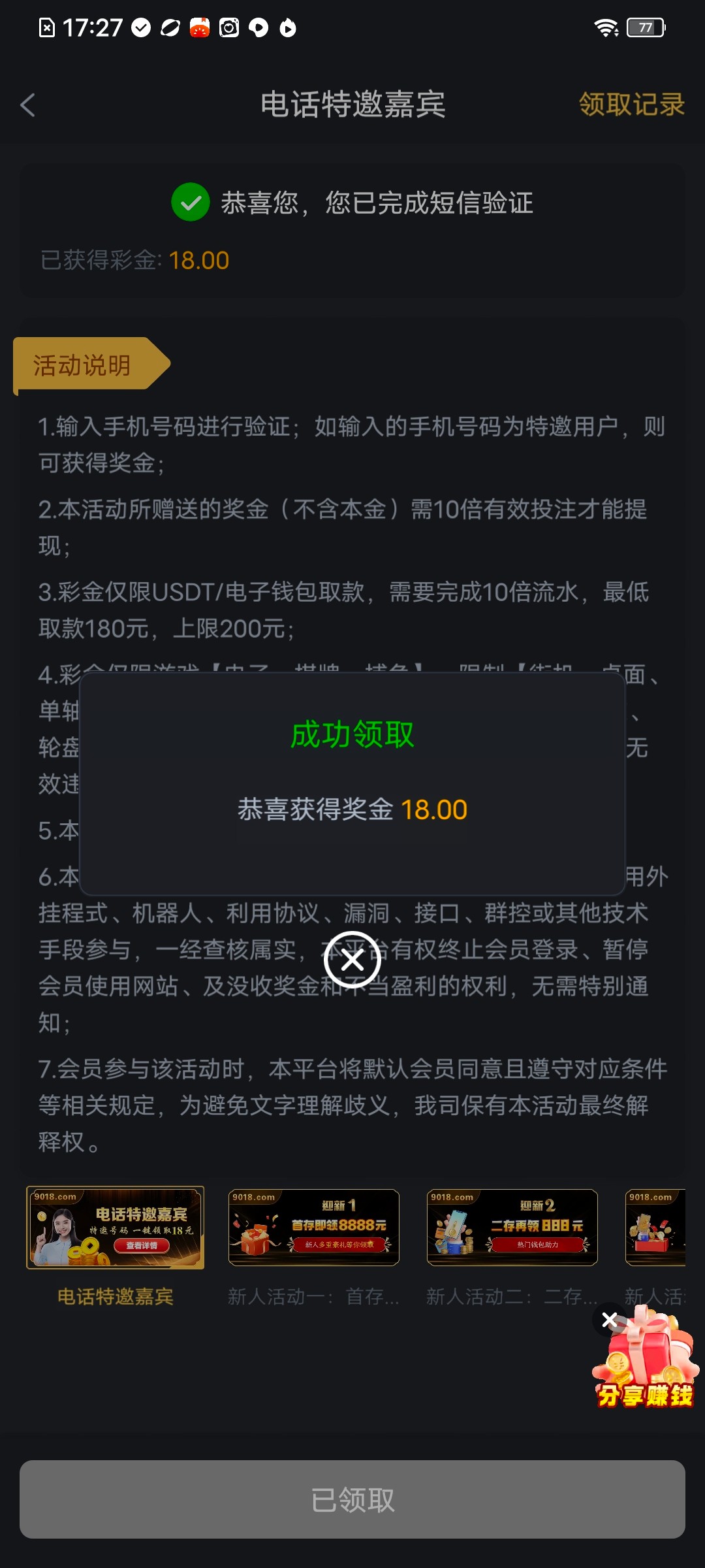 金沙9018短信验证特邀彩金之前不是特邀的去看看