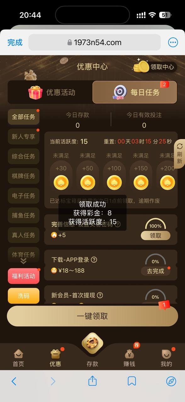 新用户下载app注册绑定好信息任务里面自助领取8彩金,具体自测吧
