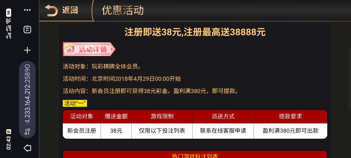 下载注册账号自助申请 新人38彩金和app18彩金 限制出款 自测 查ip