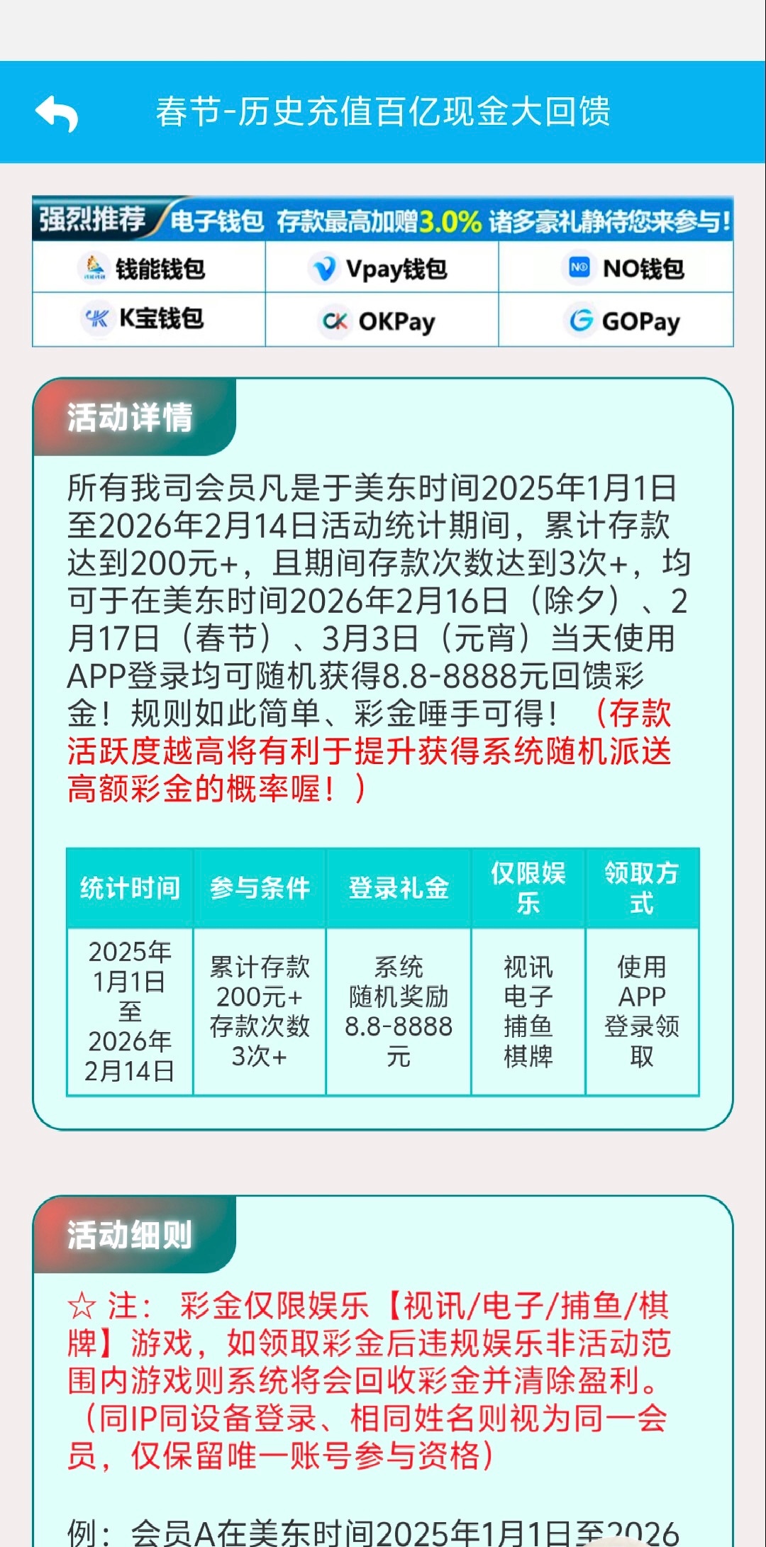 8822.com有回馈彩金,2025.1.1到2026.2.14有充值的可以到下午1点查看领取回馈彩金还有红包雨,吊大的大哥可以博一下