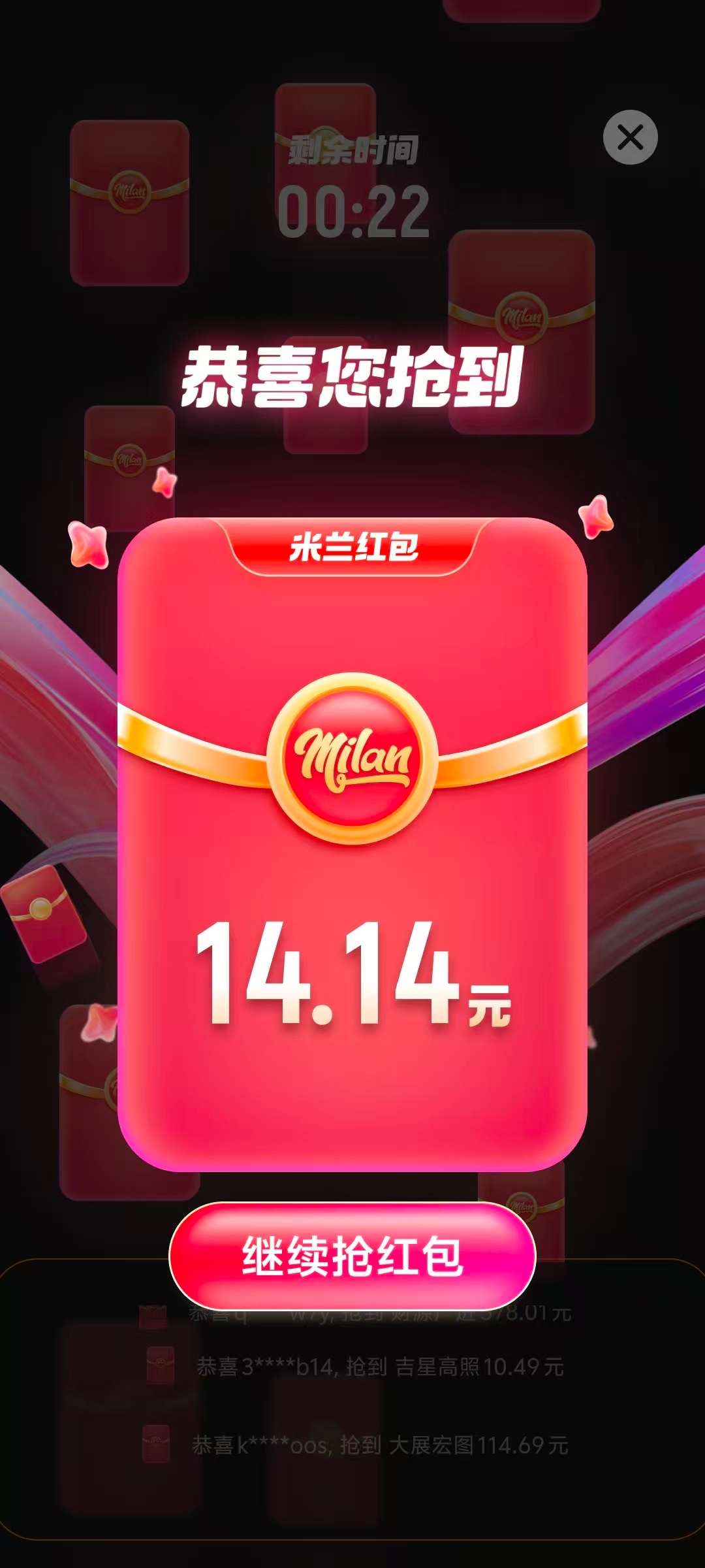 米兰元宵节0点晚上八点,晚上十点,三个红包可以抢
